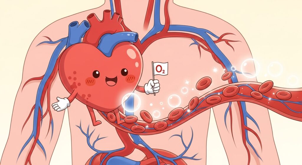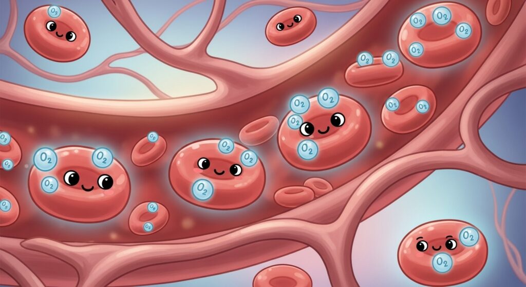 - 血液の酸素運搬能力:赤血球中のヘモグロビンがどれだけ効率よく酸素を運べるか。