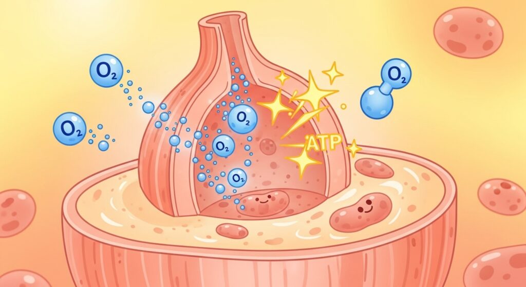 - 筋肉の酸素利用効率:筋細胞がどれだけ酸素を取り込み、エネルギー(ATP)を生み出せるか。