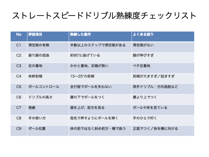 → チェックリストはスピードドリブルの主要要素を網羅。